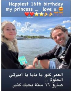 وكتب سيف سبيعي مهنئا ابنته دهب بعيد ميلادها: “العمر كله يا بابا، يا أميرتي الحلوة، صاروا 16 سنة بحبك كتير”.