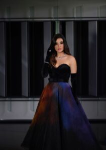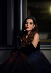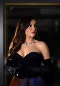 وقد ظهرت الاختيار بإطلالة راقية خطفت فيها الأنظار بفستان ملوكي مكشوف الكتف ونسقت معه قفازات زينتها بالمجوهرات.