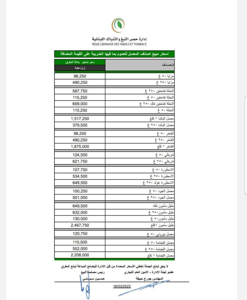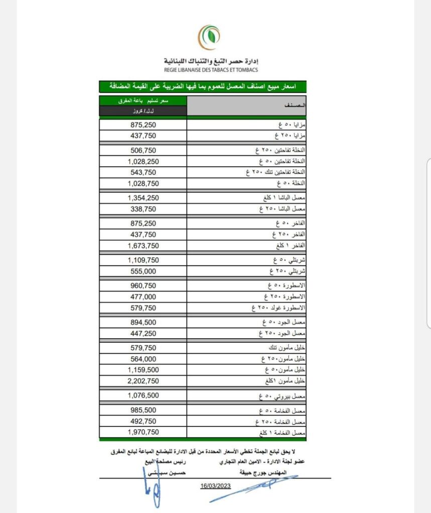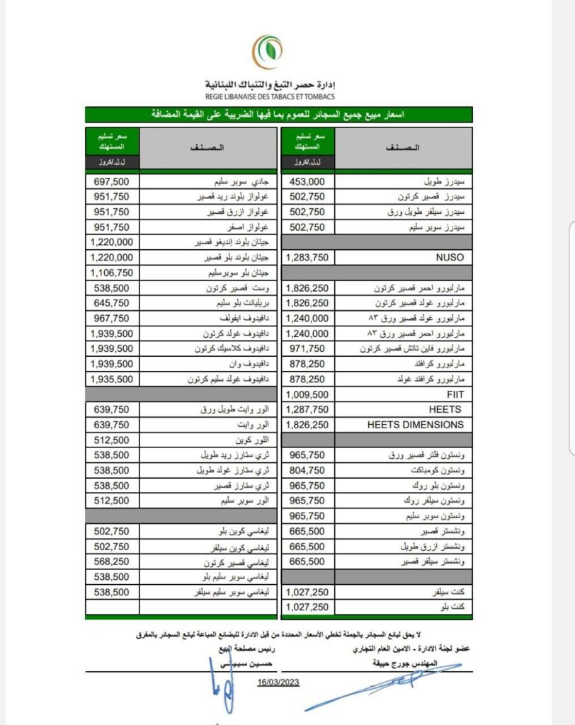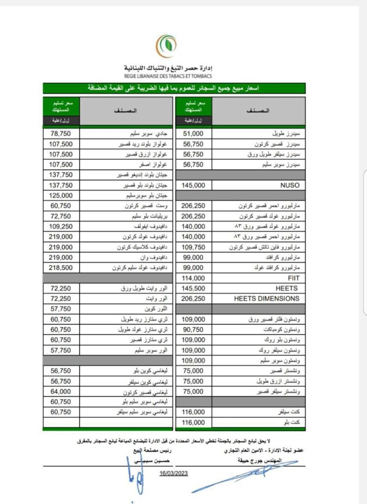 حدّدت إدارة حصر التبغ والتنباك أسعار مبيع السجائر والمعسل. التفاصيل في الصور المرفقة أدناه: المزيد من المشاركات الفضة تسجّل أعلى سعر في تاريخها! أكتوبر 14, 2025 انخفاض طفيف في أسعار النفط يوليو 4, 2025 تراجع في أسعار الذهب يوليو 3, 2025 شارك هذا الموضوع: انقر للمشاركة على فيسبوك (فتح في نافذة جديدة) فيس بوك النقر للمشاركة على X (فتح في نافذة جديدة) X معجب بهذه:إعجاب تحميل... 133 شارك