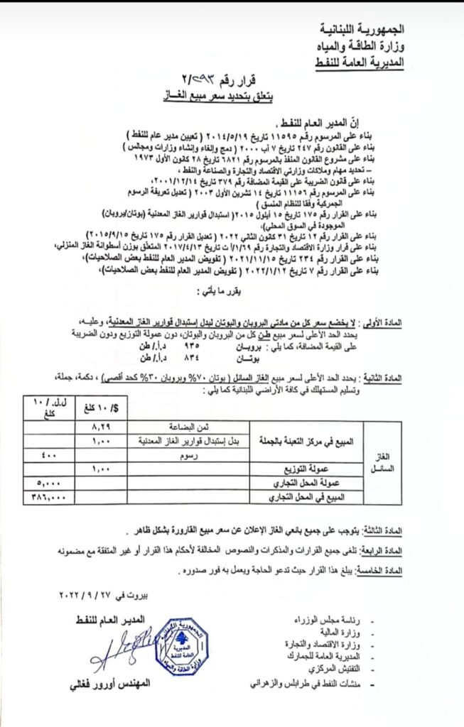 – الغاز: 386000 ليرة لبنانية.