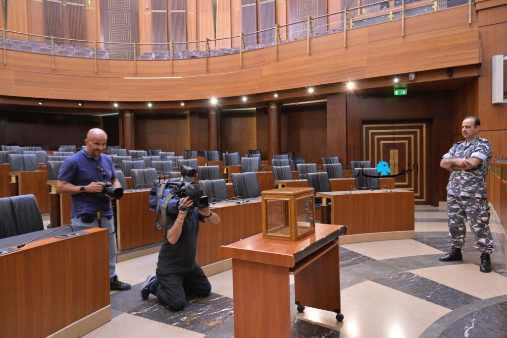 يستعد المجلس النيابي لاستضافة أولى جلسات انتخابات رئيس جديد للجمهورية، والتي ستُعقد اليوم. وتم وضع صندوق الاقتراع في قاعة المجلس.