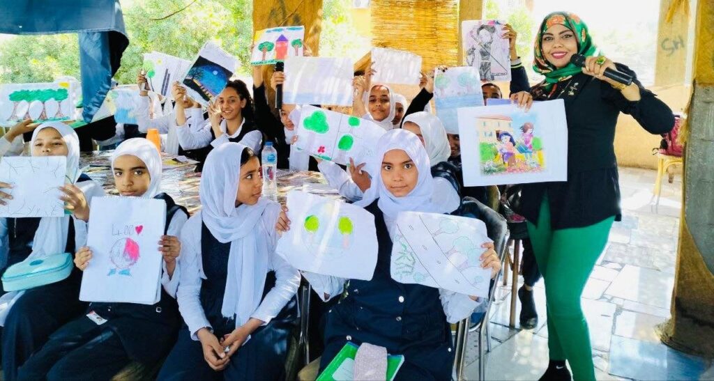 كاتبة أدب الطفل والإعلامية الكويتية أمل الرندي أسهمت في فعاليات المهرجان بتقديم ورشة بعنوان “بيئة نظيفة صحة سليمة”، تناولت فيها قصة “البيت الكبير”، التي تحث على البيئة والاستفادة من الوقت والحث على زراعة النباتات والورود، وذلك في مدرسة السيدة نفيسة في كوم أمبو بمحافظة أسوان، وبمشاركة العشرات من الأطفال الذين تفاعلوا مع القصة، وقاموا برسم لوحات جميلة عبرت عن مخرجات الفعالية.وفي ختام الفعالية أهدت الكاتبة الرندي نسخاً من قصتها عن البيئة الكويتية”أصدقائي نباتات البر”.