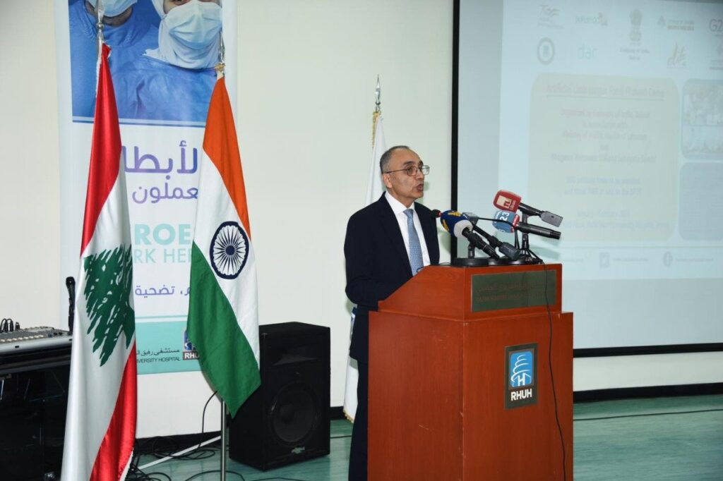 بمناسبة العيد الوطني 74 للهند ، تم افتتاح مخيم جايبور لتركيب الأطراف الصناعية للقدم في 26 يناير 2023 في مستشفى رفيق الحريري الجامعي في بيروت تحت رعاية وزارة الشؤون الخارجية في الهند في إطار برنامج “الهند من أجل الإنسانية” وبتنفيذ من BMVSS “قدم جايبور” وهي أكبر منظمة في العالم لإعادة تأهيل الأشخاص ذوي الاحتياجات الخاصة في الأطراف السفلية.